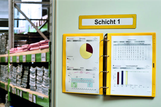 The ability to display key information in accessible and visible places is of paramount importance in a manufacturing or logistics environment. Our document holder collection includes a variety of magnetic & self-adhesive Window Document Holders made of robust, long-lasting PVC, available in a variety of colours and sizes. We also have a Magnetic Ring Binder Document Holders with a powerful rubberised magnet for use on shelf crossbeams, wallboards, and other similar surfaces. At ORGATEX, we offer a variety of innovative solutions which can assist with visualisation in your workplace and our range of document holders can be used in conjunction with our bespoke visual boards to help supercharge your visual management system. Want to know more about why insert boards and document holders are essential for lean management? Visit our practical knowledge page here >