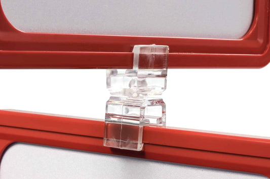 Transparent clip, can be rotated 360°. To connect muliple frames