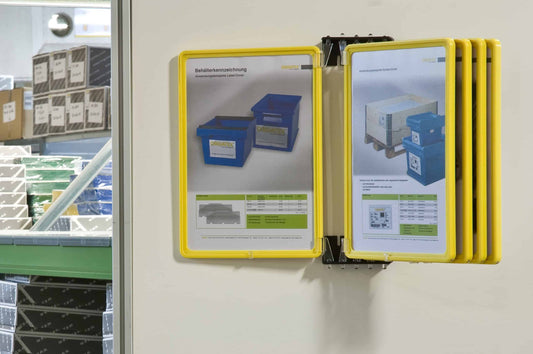 Our range of hanging safety signs and accessories is designed to help companies implement their visual management systems. Our hanging sign message boards are made from robust plastic, with a scannable AR-coated cover, and are available in both portrait and landscape in a range of sizes and colours. Series 100 Hanging Signs are available from 140 X 417mm to 420 X 297mm (A3), whilst Series 200 Hanging Signs are available from 594mm X 420mm (A2) to 841mm X 594mm (A1). When ordering your message board make sure not to forget the accessories you need to hang it. We stock a wide range of clips, brackets, pipes, hooks, frame holders, chains and more, to make it easy for you to display your hanging sign anywhere you see fit. If you have any questions relating to your hanging sign systems then please contact one of the sales team and they’ll be happy to assist you. Want to know more about why hanging signs are important for lean management? Visit out practical knowledge page here >